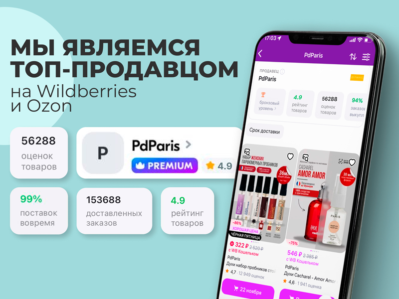 Pd.Paris – это бренд с более чем 3 млн любимых клиентов. Мы работаем с 2018 года и имеем прямые контракты с лучшими парфюмерными производителями Франции и Швейцарии, что обеспечивает высокое качество продукции.