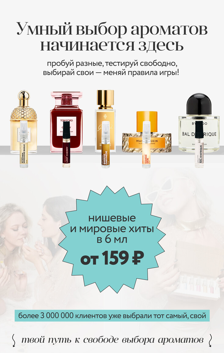 Нишевая парфюмерияЖенская парфюмерияМужская парфюмерияАвтопарфюмыНаборыО насПартнерская программа ₽